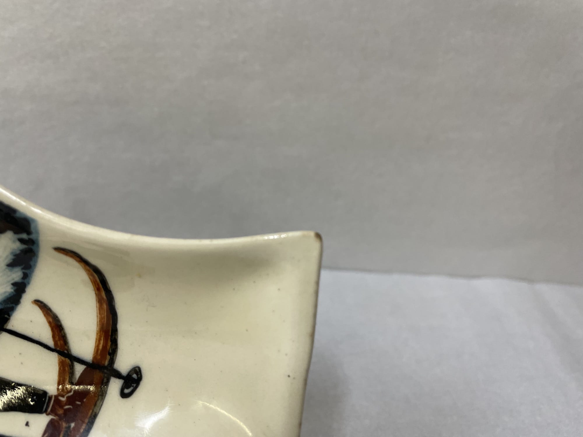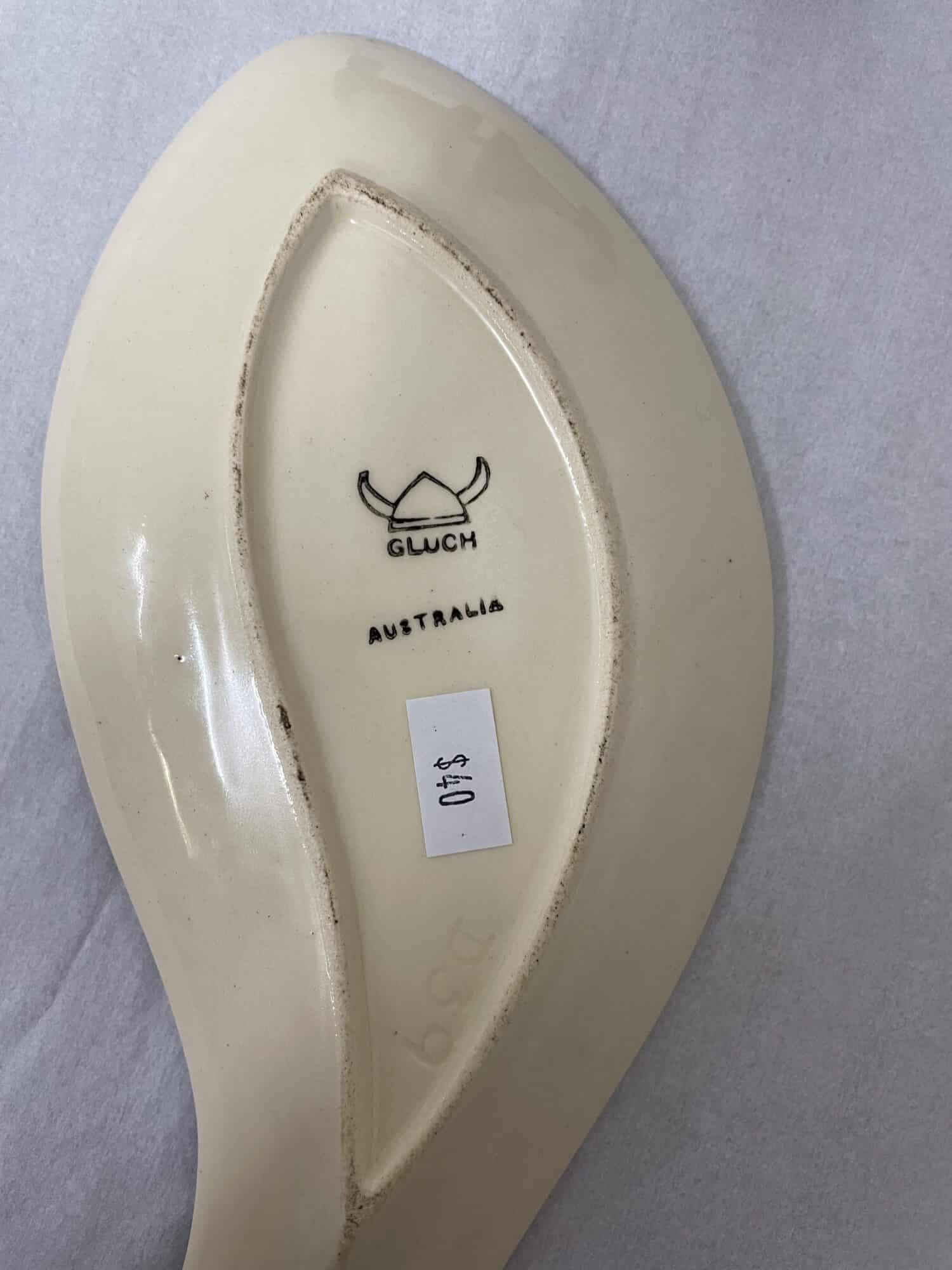Gluch pottery pin dish “snowy Mountains”. D39. Made in Sydney, Australia. Small chip at the tip.
